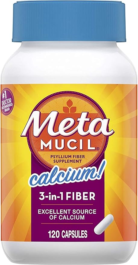 Amazon Com Metamucil With Calcium Psyllium Husk Fiber Supplement 3 In 1 Fiber For Digestive Health Bone Health Plant Based 120 Capsules Health Personal Care